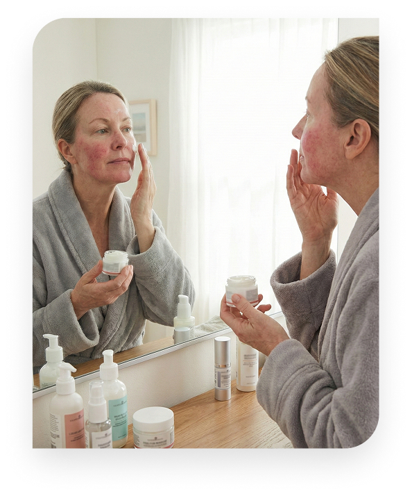 Mēs novērtējam jūsu ādas stāvokli un rozācijas veidu.